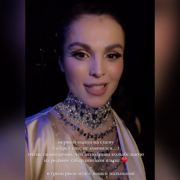«Первый выход на сцену. Декрет еще не кончился. Очень символично, что исполнила колыбельную на родном кабардинском языке. А в гримерной ждал муж с нашей малышкой», — отметила знаменитость.