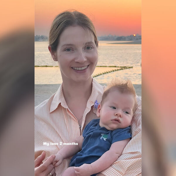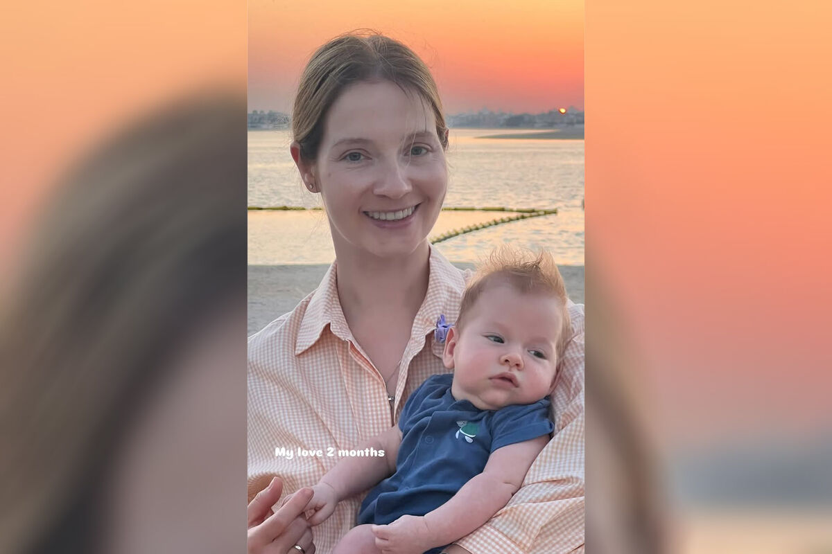 Знаменитость позировала с ребенком на пляже в Дубае, где отдыхает с семьей.