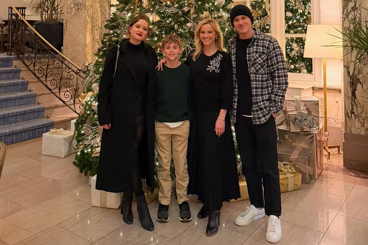 Голливудская звезда Риз Уизерспун опубликовала рождественские фото с тремя детьми. Актриса позировала с дочерью и сыновьями возле наряженной елки и поделилась кадрами в соцсетях.