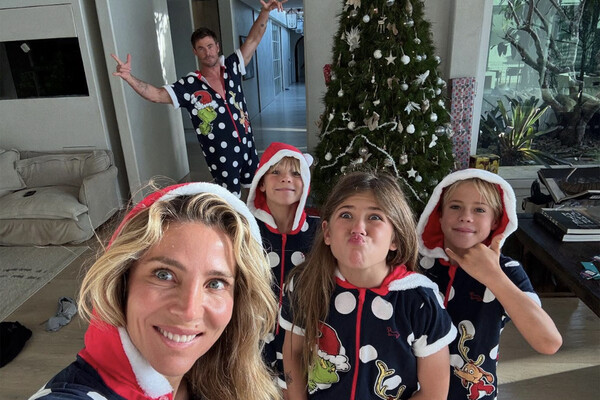 Звезда «Тора» Крис Хемсворт снялся с женой и тремя детьми в одинаковых пижамах. Супруга актера Эльза Патаки поделилась в соцсетях редким семейным фото, не скрывая лица дочери и сыновей.