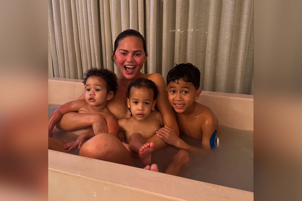 Модель Крисси Тейген снялась обнаженной в ванной с тремя детьми