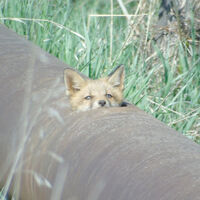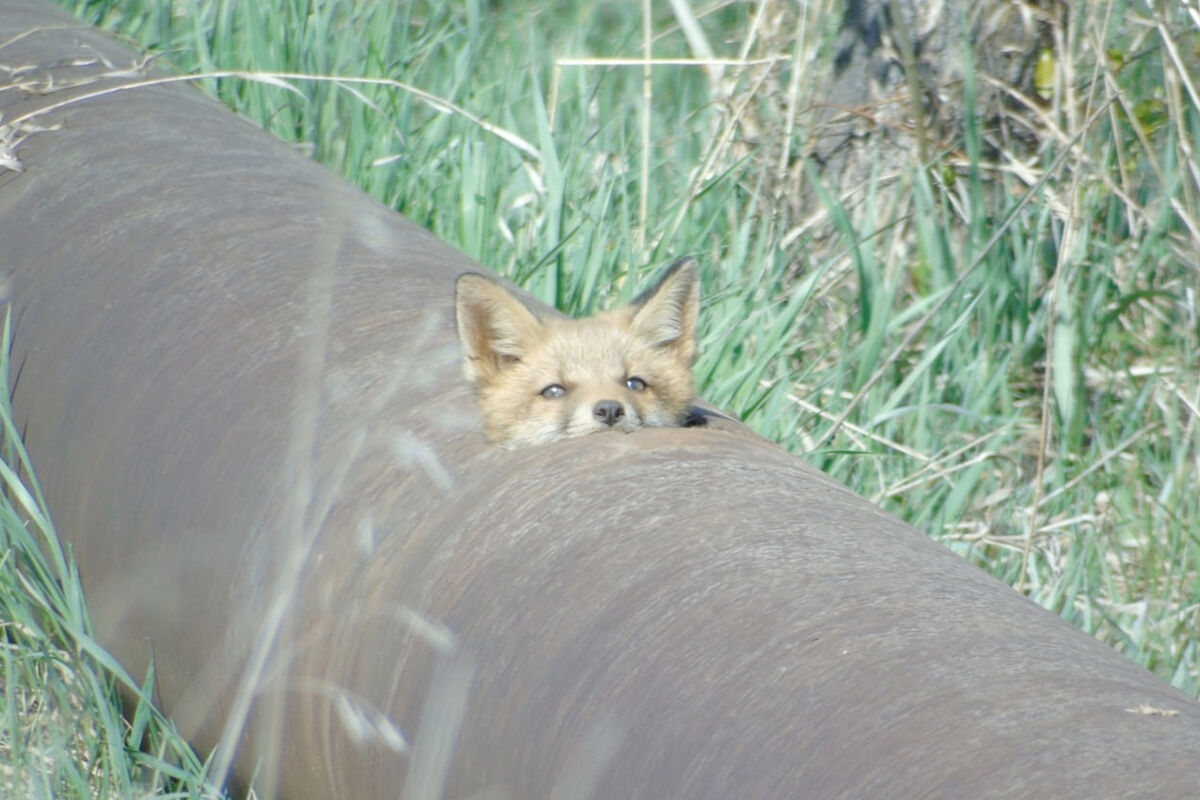 Тогда работник ведомства отошел на безопасное расстояние и стал наблюдать за предполагаемой норой. Сначала туда юркнула лисица, а через некоторое время из дыры в трубе появился детеныш с полевкой в зубах, добытой матерью. Следом за ним появился еще один лисенок.