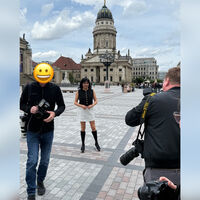 Нетребко привлекла внимание фотографов, появившись в центре Берлина в мини-юбке