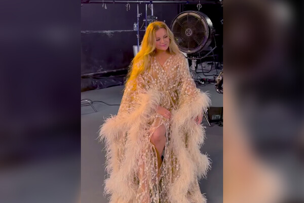 Жена композитора Игоря Николаева снялась в будуарном платье. Певица Юлия Проскурякова позировала в студии в наряде, расшитом пайетками, кристаллами и перьями. Она поделилась кадрами со съемки в Instagram (владелец компания Meta признана в России экстремистской и запрещена).