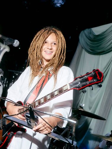 «Саня впервые отправился один в путешествие. Он ждал этот день, едет на концерт в Тбилиси. Предпочел такой вид отдыха. Мой любимый подросток. Встречает его моя близкая подруга, и до конца лета у него объемная программа. Как быстро дети становятся взрослыми. Я так горжусь сыном. Мой Бременский музыкант, в клеше и с гитарой», — поделилась блогер.