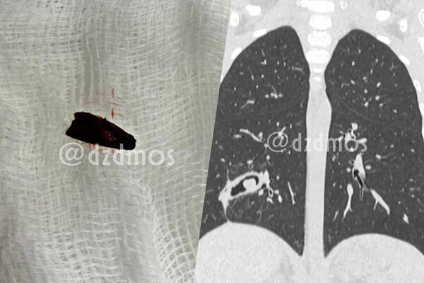 «Как выяснилось, часть скорлупы семечки глубоко впаялась в третий субсегмент правого легкого, из-за чего у пациентки образовался бронхоэктаз, то есть плохо функционировали из-за скопления гноя бронхи», — рассказал детский хирург Дмитрий Еремин.