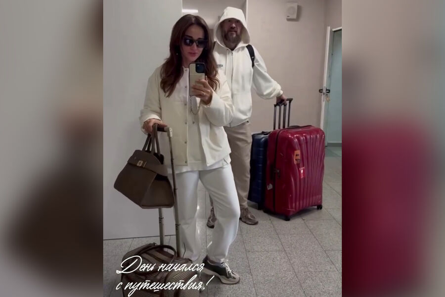 «День начался с путешествия. Саша очень боится перелетов, поэтому немного на стрессе. Я спокойна. Улетаем в Китай. До ноября нас не ждите», — поделилась знаменитость.