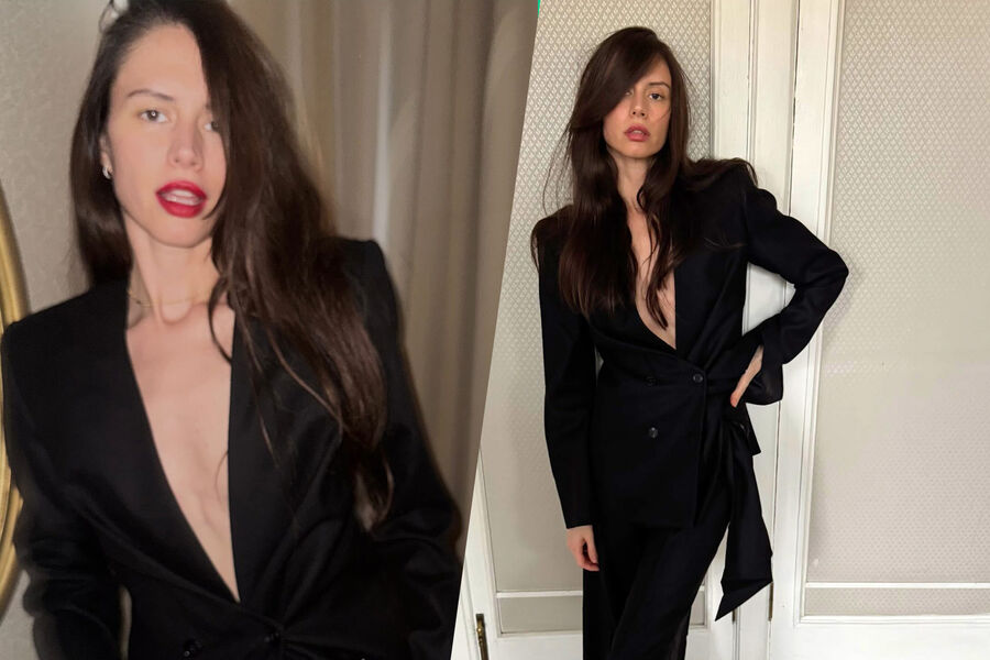 Жена актера Ивана Янковского снялась в жакете с глубоким декольте на голое тело. Звезда сериала «Отель Элеон» Диана Пожарская позировала перед зеркалом в примерочной и показала свой откровенный образ подписчикам в Instagram (владелец компания Meta признана в России экстремистской и запрещена). Артистка дополнила его шелковой юбкой в длине макси.
