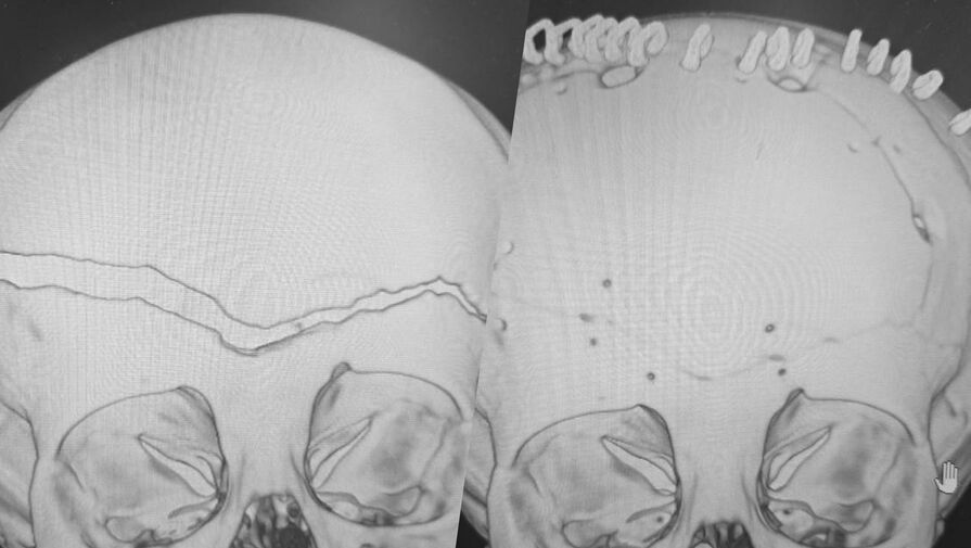 «У ребенка была гигантская эпидуральная гематома и линейный перелом лобной и теменной костей с расхождением линии перелома до 1,5 см», — рассказал заведующий нейрохирургическим отделением ВКБ №2 Сергей Моисеенко, добавив, что у его коллега на счету была каждая минута.