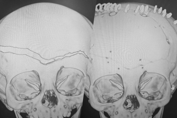 «У ребенка была гигантская эпидуральная гематома и линейный перелом лобной и теменной костей с расхождением линии перелома до 1,5 см», — рассказал заведующий нейрохирургическим отделением ВКБ №2 Сергей Моисеенко, добавив, что у его коллега на счету была каждая минута.