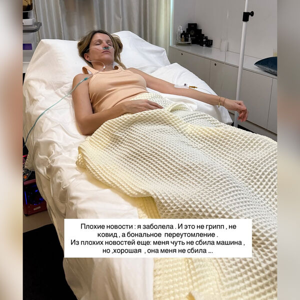 «Приехала ставить иммунную капельницу, сил нет совсем. Плохие новости: я заболела. И это не грипп, не ковид, а банальное переутомление. Из плохих новостей: меня чуть не сбила машина. Но хорошая новость, что не сбила. Ну что, завистники, не дождетесь. Мы победим всех, и болезнь тоже. Я раза три за день хотела разреветься, но этого не сделала. И если я шучу, значит, еще есть силы все это пережить», — высказалась артистка.