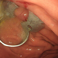 «Для извлечения инородного тела мы выполнили гастроскопию, в ходе которой захватили стоматологическую скобу эндоскопической петлей. Так как инородный предмет был острый, то это создавало высокие риски травмировать слизистую, мы поэтапно провели скобу через пищевод, устье пищевода и гортаноглотку», — рассказала эндоскопист Анастасия Лазарева, добавив, что манипуляция длилась 10 минут.