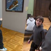 «Окультуриваю младшего. Накануне как раз был прочитан миф про похищение Европы», — отметила она, сняв ребенка возле картины Валентина Серова.