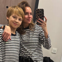 Актриса Наталья Земцова снялась с сыном от гитариста Uma2rman Сергея Кристовского и поделилась кадрами в Instagram (владелец компания Meta признана в России экстремистской и запрещена). Звезда сериала «Восьмидесятые» подобрала себе и 11-летнему Ивану похожие образы. Они позировали перед зеркалом в лонгсливах в полоску и серых джинсах.