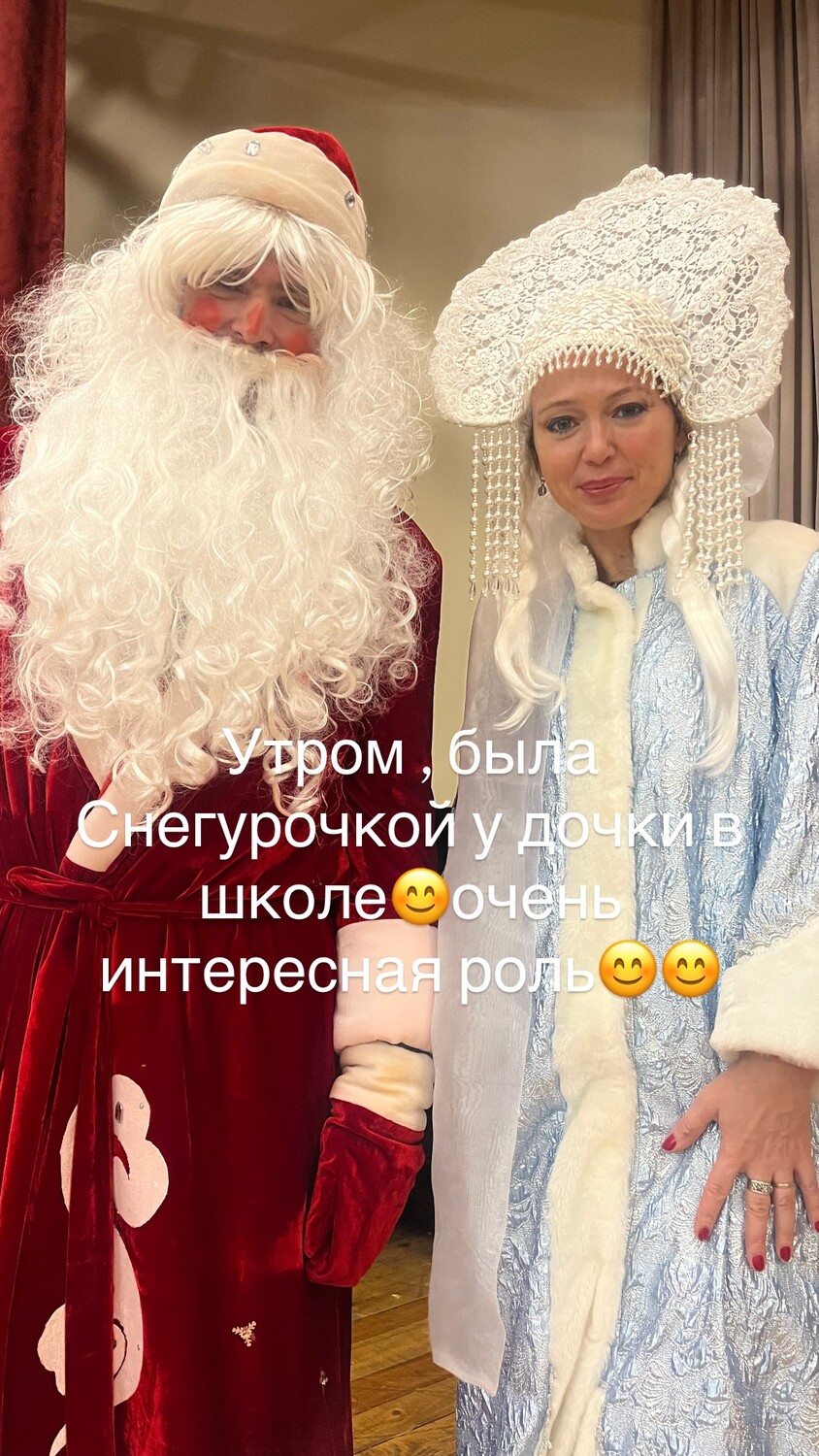 «Утром была Снегурочкой у дочки в школе, очень интересная роль», — отметила звезда «Кадетства».