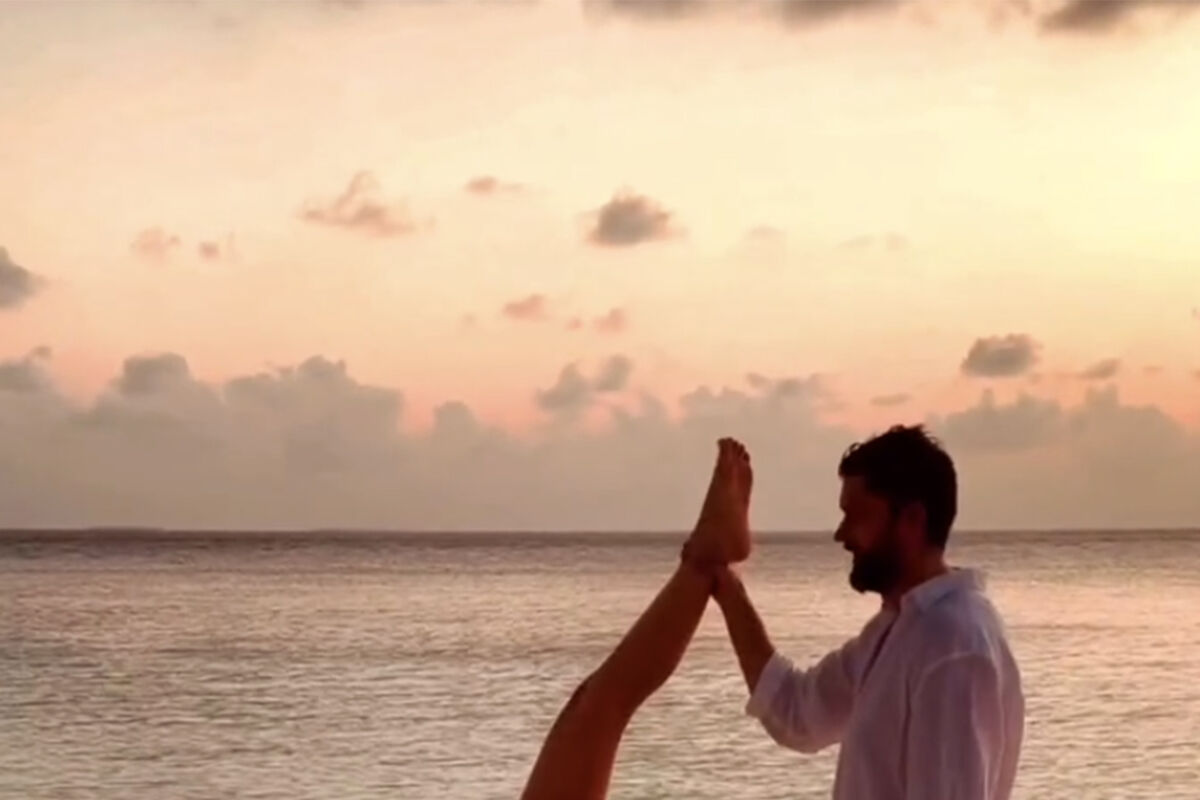 «Советский цирк. Мы, когда днем не было дайвинга, рыбалки и каких-то еще активностей. Ну и мои привычные постоянным подписчикам кульбиты из мальдивских отпусков», — отшутилась исполнительница.