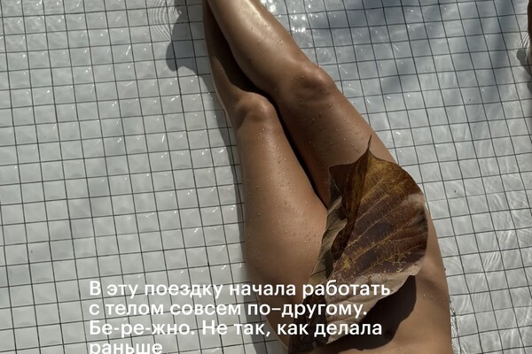 «В эту поездку начала работать с телом совсем по-другому. Бережно. Не так, как делала раньше. Формировала новые пищевые привычки. Работала с телесным практиком и нутрициологом. Была ломка, тянуло на сладкое, но я следовала новому. Сейчас идет пятая неделя на микродозинге препарата для нормализации обмена веществ. Новый для меня опыт. За месяц прожила будто три, в плане взросления и понимания процессов в теле. Возвращаюсь домой другой», — поделилась она с подписчиками.