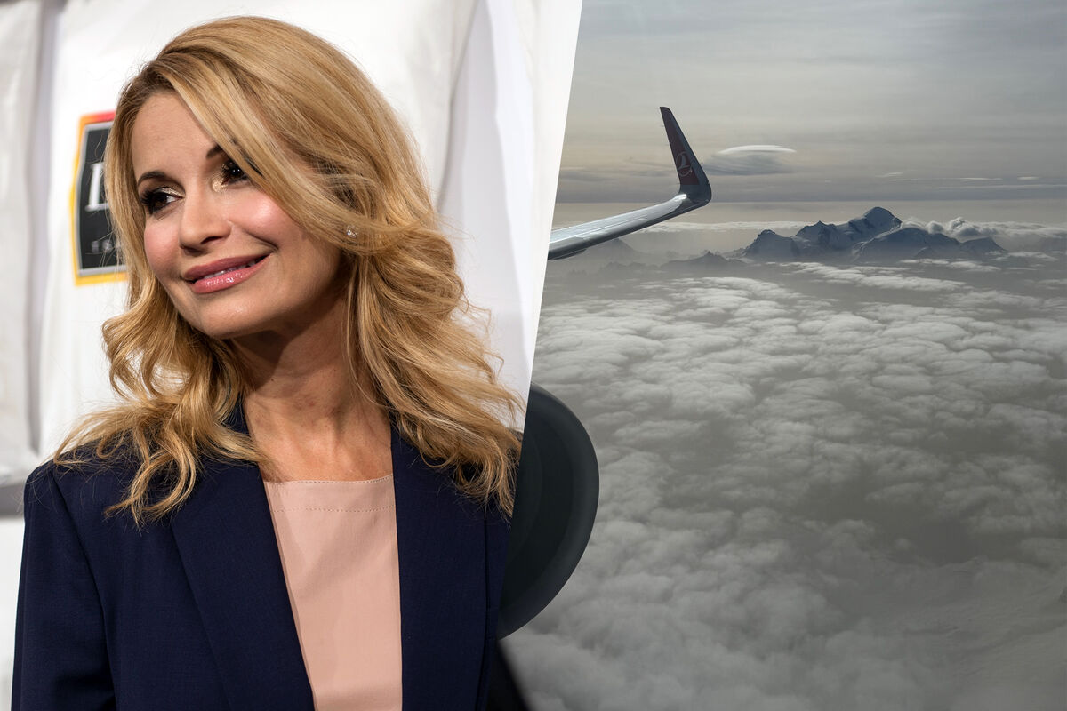 «Зацените, какую фотку я сделала», — отметила артистка, показав горы через иллюминатор.