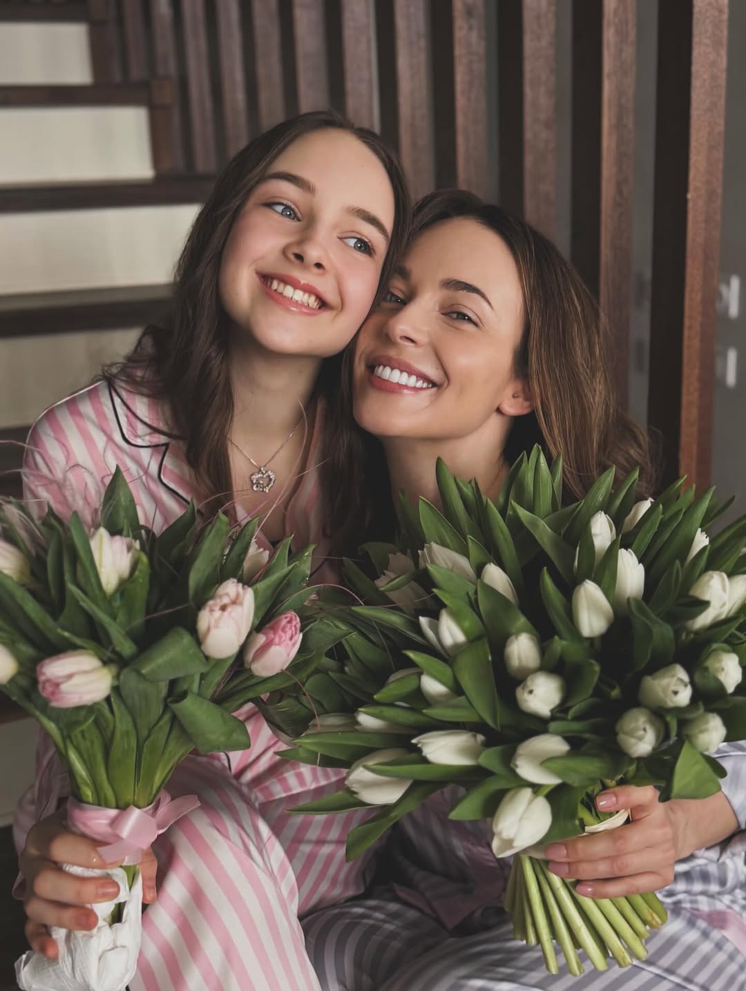 Актриса Анна Снаткина показала свою 12-летнюю дочь. Звезда сериала «Татьянин день» снялась с Вероникой в пижамах и поделилась кадрами с домашней фотосессии в Instagram (владелец компания Meta признана в России экстремистской и запрещена). Они позировали на лестнице с букетами тюльпанов.