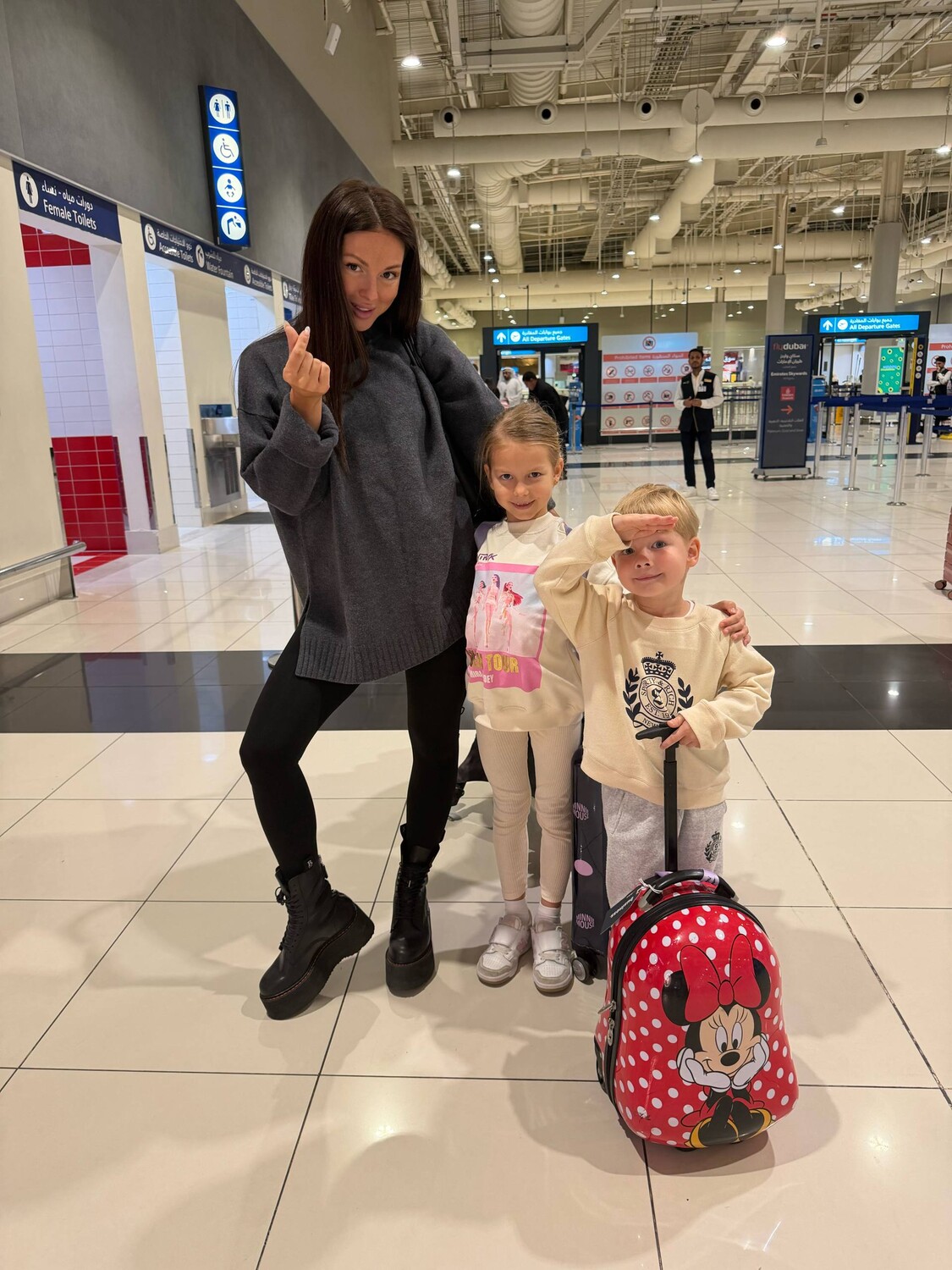 Певица Нюша вернулась в Россию с детьми. Артистка рассказала, что они смогли вылететь из Дубая в Москву. Она опубликовала в соцсетях фото из аэропорта.