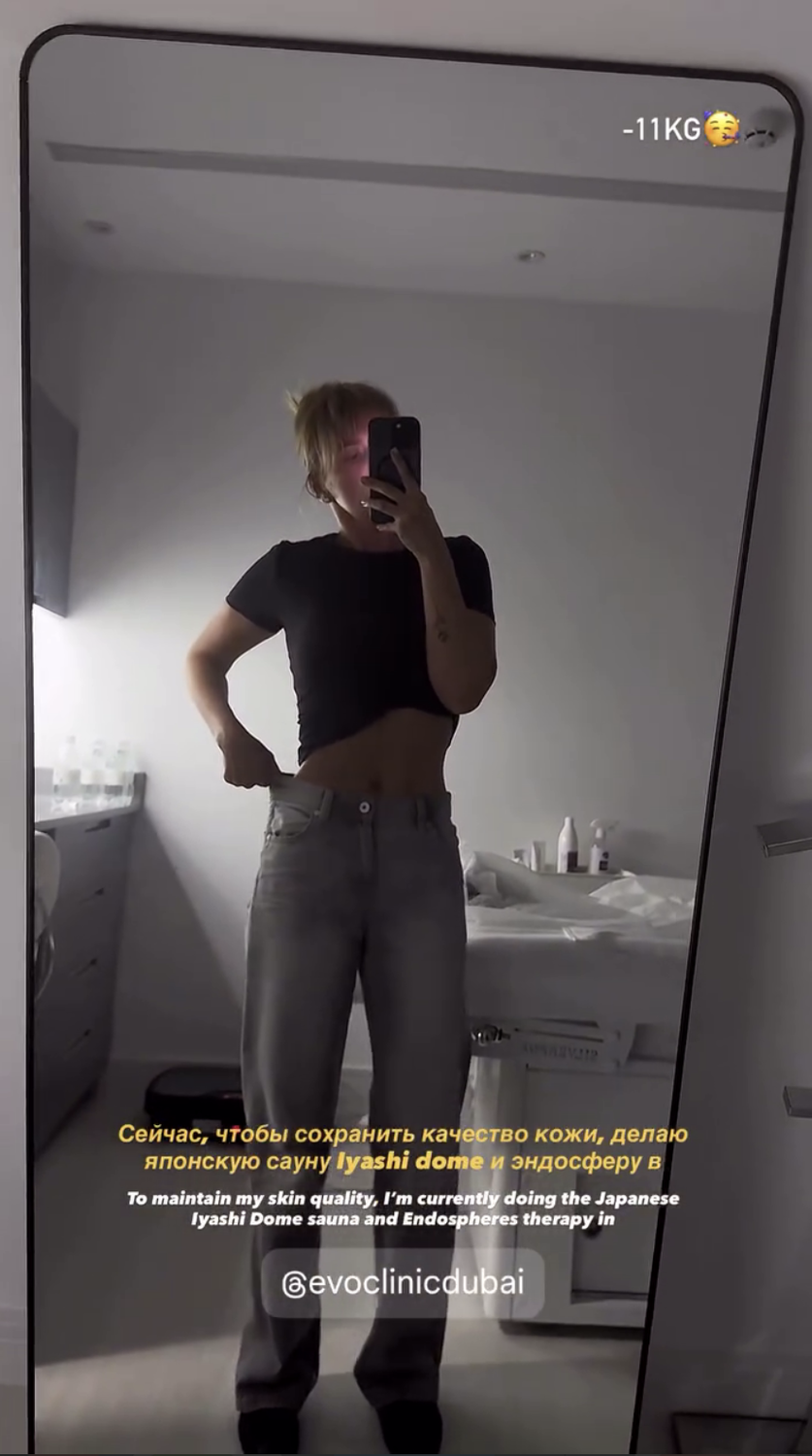«Минус 11 кг. Сейчас, чтобы сохранить качество кожи, делаю японскую сауну и эндосферу», — отметила она.