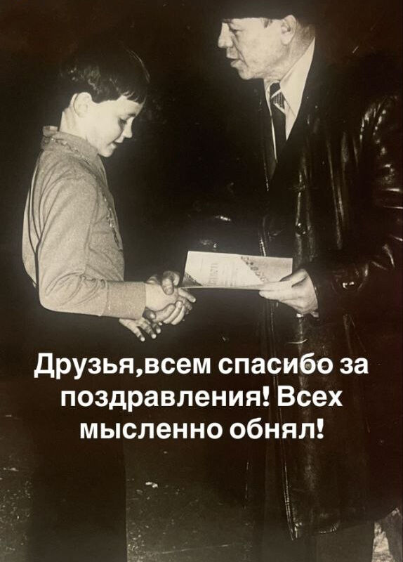 Фигурист Максим Маринин опубликовал фото из своего советского детства. Спортсмен поделился в Instagram (владелец компания Meta признана в России экстремистской и запрещена) архивным снимком в день своего рождения. Олимпийскому чемпиону исполнилось 49 лет. Именинник показал кадр, где ему вручали грамоту за победу на соревнованиях.