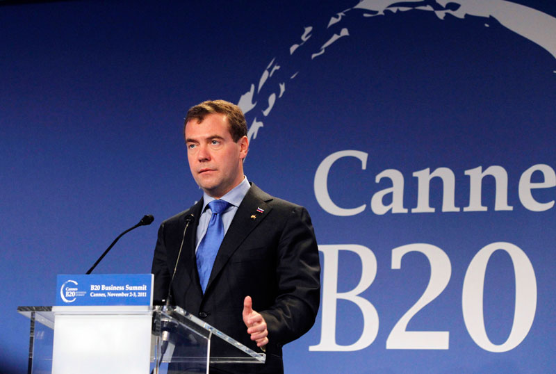 Но основное бремя спасения европейской экономики Медведев предложил возложить на бизнес. «Три года назад страны «двадцатки» протянули руку помощи финансовым рынкам. Но надо помнить, что та цена, которая была заплачена за спасение, была неподъемна для многих экономик. Долговое бремя связало руки многим странам», — напомнил российский президент. Поэтому «именно крупному бизнесу предстоит взять на себя бремя лидерства и сделать это своими силами», считает Медведев. А «там, где проблемы вызваны суверенными долгами, государства должны подставить плечо».
