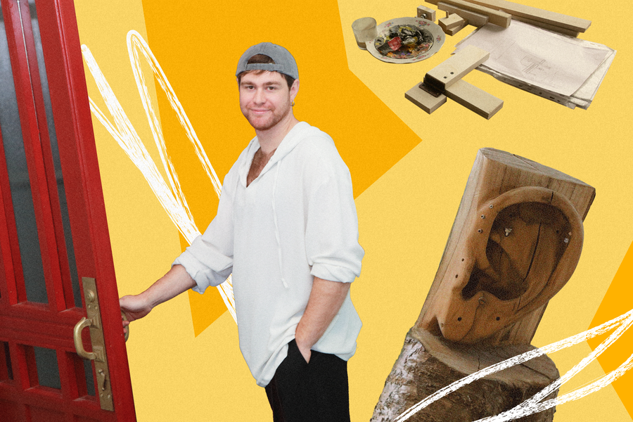 В мастерской на стеллажной полке рядом с «Библией реставрации мебели» стоит вырезанный из ствола вишневого дерева макет человеческого уха, пугающий своей реалистичностью. Это напоминание о том периоде в жизни, когда наш герой занимался пирсингом. Свою студию Александр открыл, когда ему было 20 лет. Потом, переехав в Санкт-Петербург, 5 лет проработал в крупной студии, прокалывал клиентам уши.
