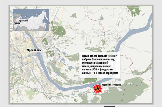 Схема взлета самолета ЯК-42, закончившегося его падением