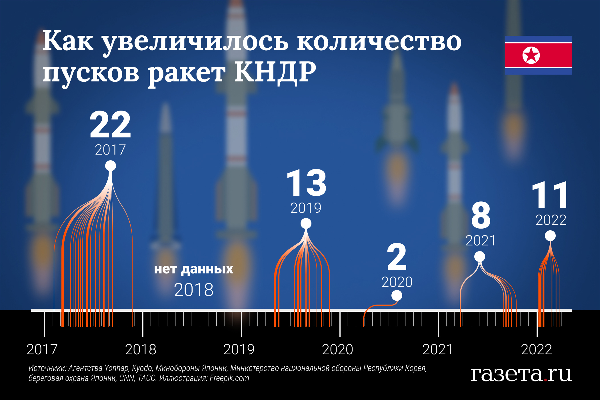 Северная Корея запускает межконтинентальные баллистические ракеты, которые могут достичь территорию США, с 2017 года — тогда речь шла о «Хвасон-12», «Хвасон-14», «Хвасон-15». При этом общее число пусков достигло максимального количества в 2017 году — 22, а затем резко упало из-за попыток урегулировать корейский кризис дипломатическим путем.