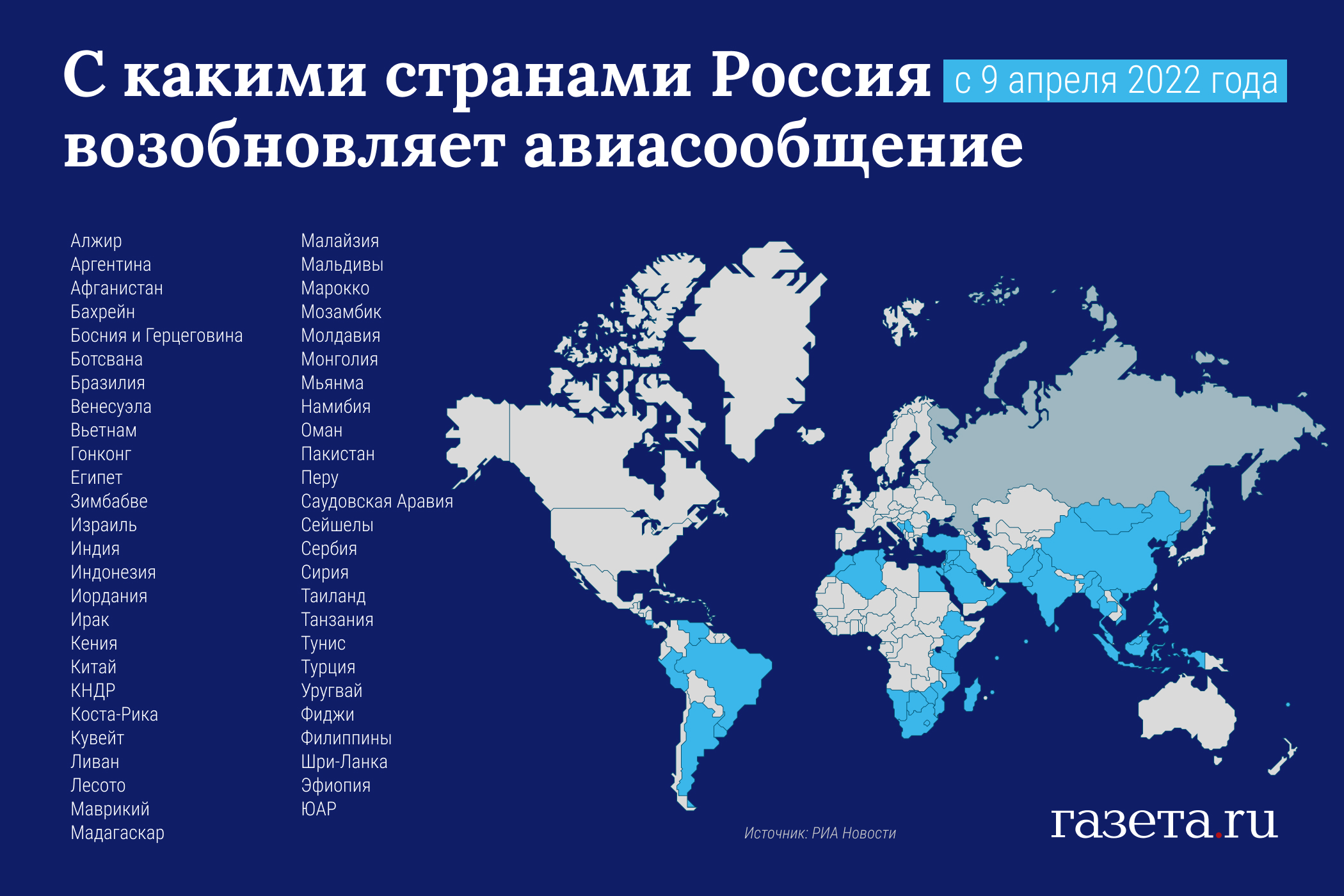 В какие страны еще можно будет полететь с 9 апреля — в инфографике «Газеты.Ru»