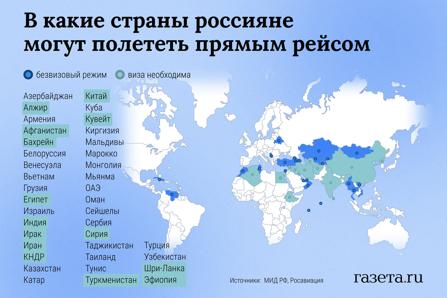 Осенью 2023 года из аэропортов РФ можно без пересадок улететь в 38 стран мира. По данным Росавиации, недавно список государств, с которыми Россию связывает прямое авиасообщение, пополнила Мьянма. 5 сентября в Новосибирске приземлился первый за 30 лет самолет Myanmar Airways International из Мандалая.