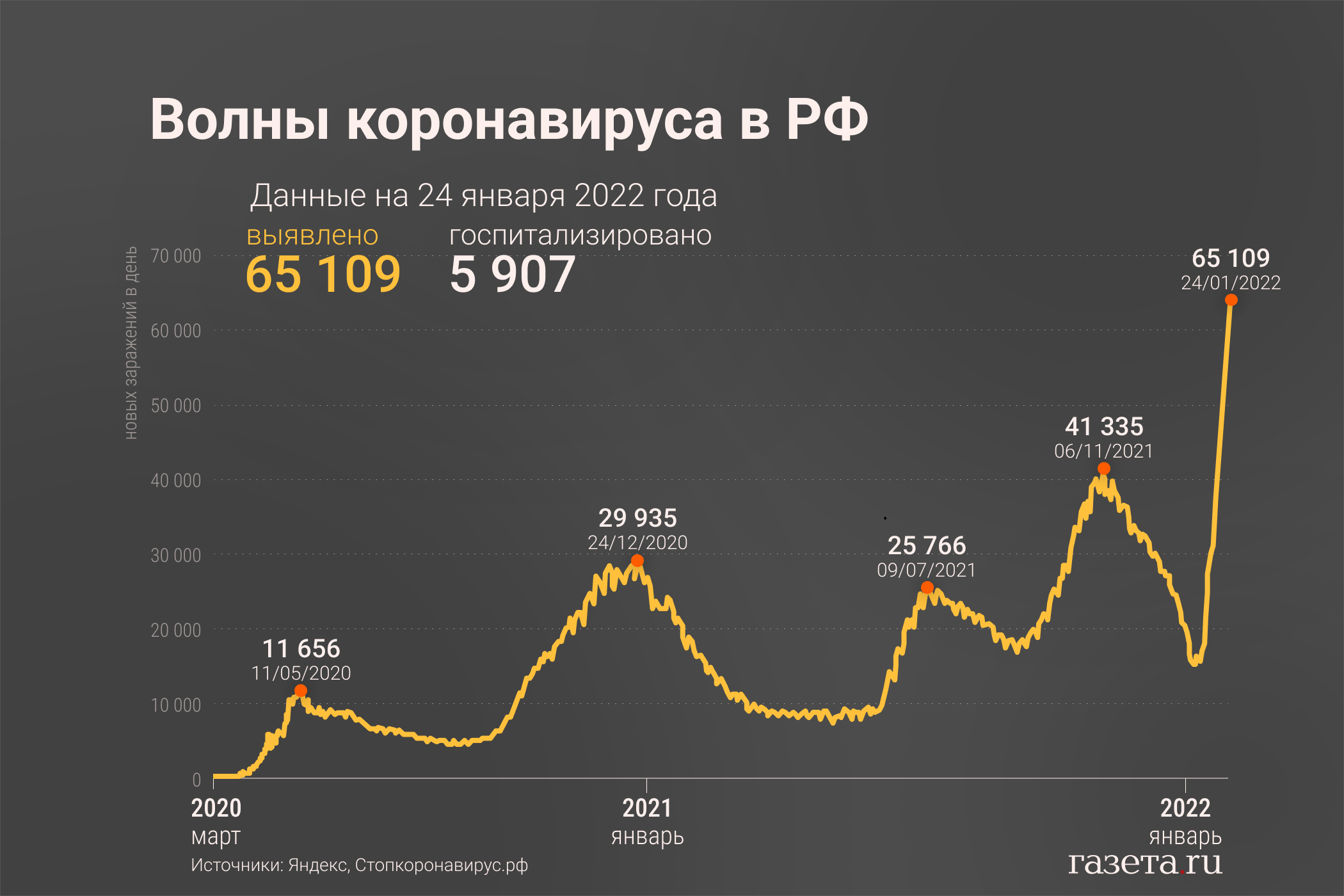 Как выглядели волны коронавируса в России и какие были пиковые значения с начала пандемии — в инфографике «Газеты.Ru».