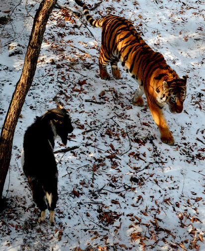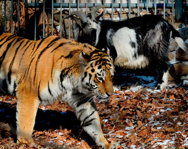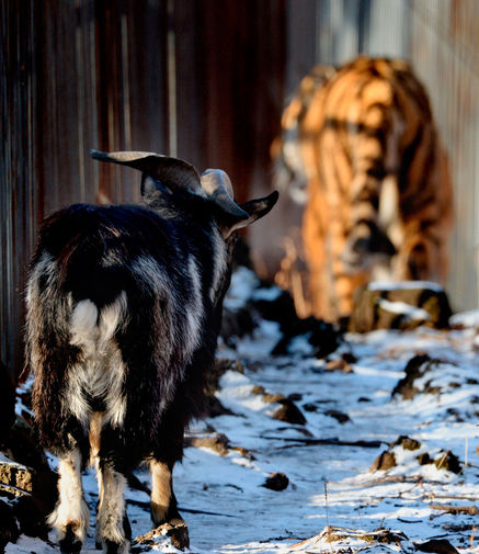 Ранее сообщалось, что козел и тигр начали играть в Приморском сафари-парке.