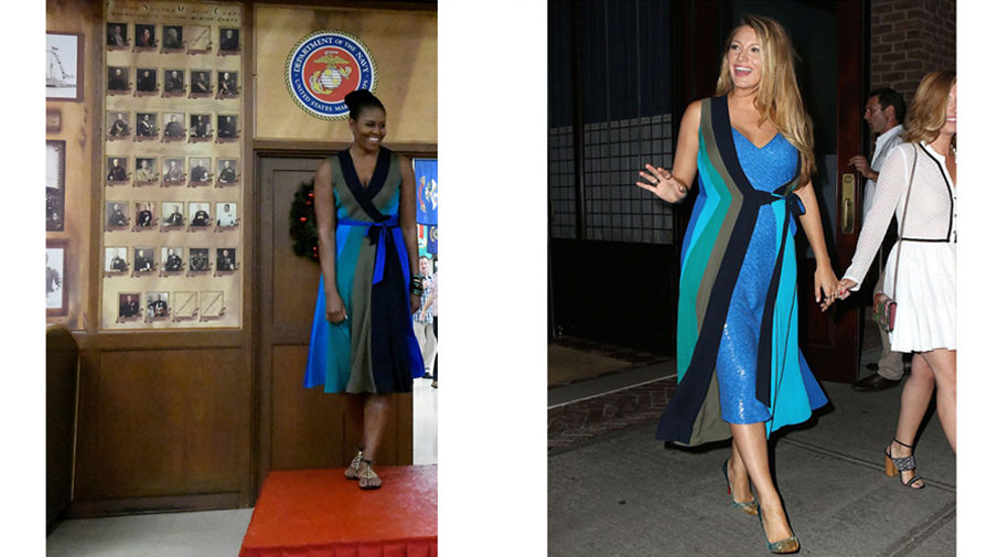 Таким образом, отмечает издание, Обама и Лайвли появились на публике в одинаковых платьях, но в совершенно разные сезоны.