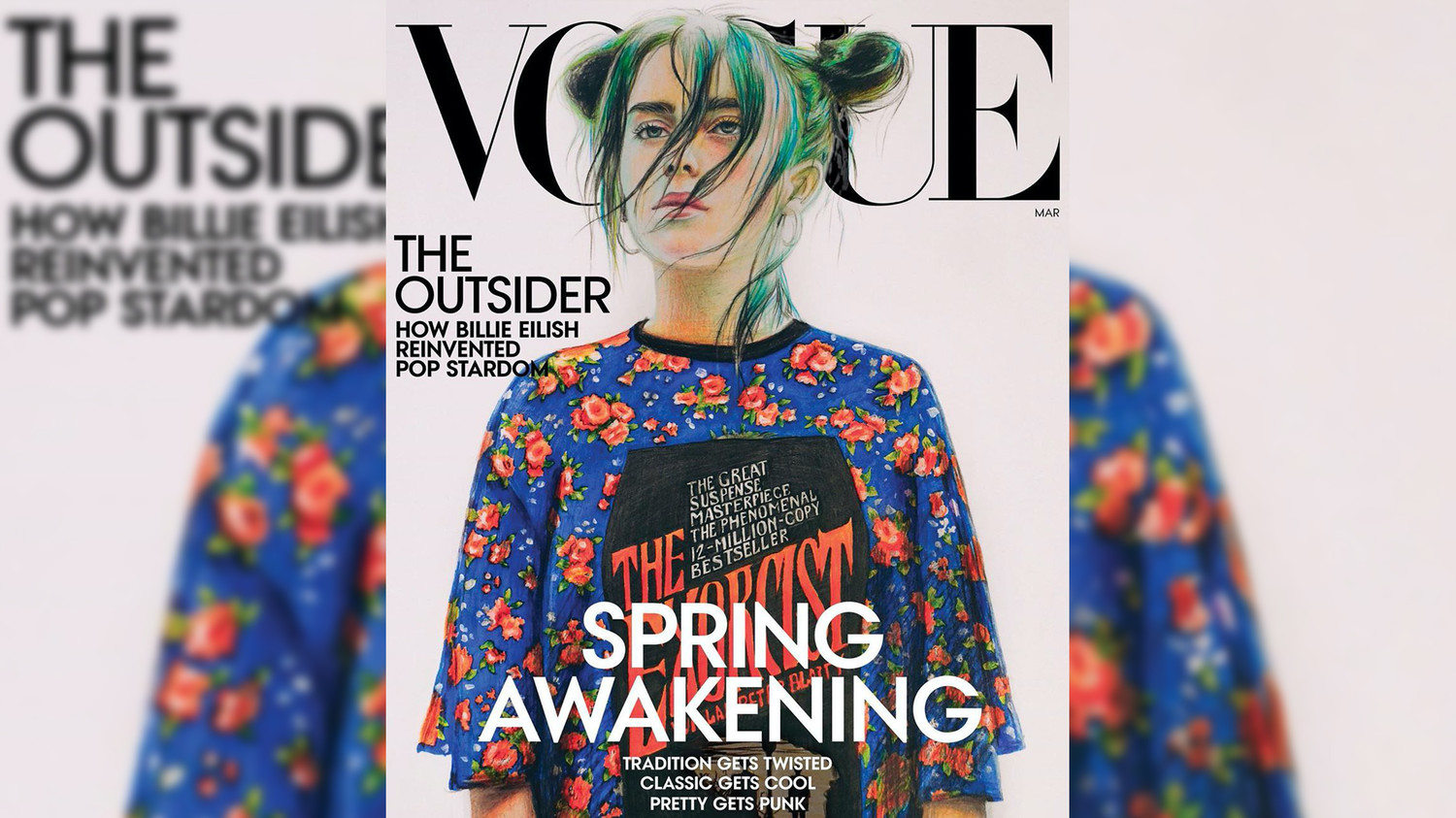Помимо россиянки, Айлиш отметила еще одного художника — чей рисунок так же появится в данном номере Vogue — 20-летнюю американку Кейли Янг из города Кантон в штате Мичиган.