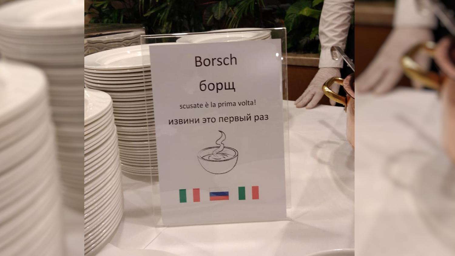 Семенов опубликовал фотографию таблички, на которой было написано «Борщ. Извините, это в первый раз».