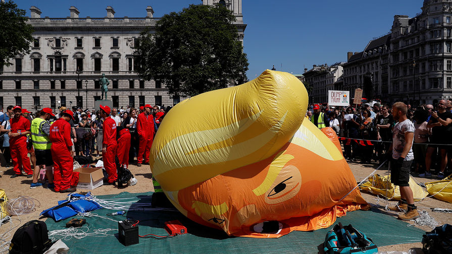 В Великобритании, где второй день с официальным визитом пребывает президент США Дональд Трамп, тысячи британцев собрались в знак протеста против визита американского лидера. Об этом пишет Huffington Post. Активисты в знак протеста подняли в небо надувного «малыша Трампа» в центре Парламентской площади в Лондоне. Надувной шестиметровый баллон с гелием представляет собой воздушный шар с кричащим выражением лица и злой гримасой президента США Дональда Трампа, который изображен ребенком в подгузниках и с телефоном в руке. Сами активисты называют себя няньками «малыша Трампа».