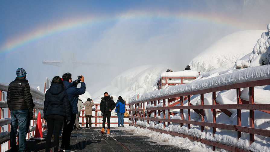 На границе Канады и США замерз Ниагарский водопад – из-за того, что в провинции Онтарио установились минусовые температуры, воды как будто бы остановились. Пользователи соцсетей делятся фотографиями необычного зрелища, однако на самом деле потоки воды не превратились в лед – это иллюзия. Еще в 2019 году на сайте парка «Ниагара Паркс» всем интересующимся разъяснили: когда температура воздуха опускается ниже ноля, туман и водяная пыль, которую образуют низвергающиеся в реку Ниагару потоки воды, действительно замерзают и образуют ледяную корку. Она и создает ощущение, будто водопад замерз – однако подо льдом вода продолжает падать.