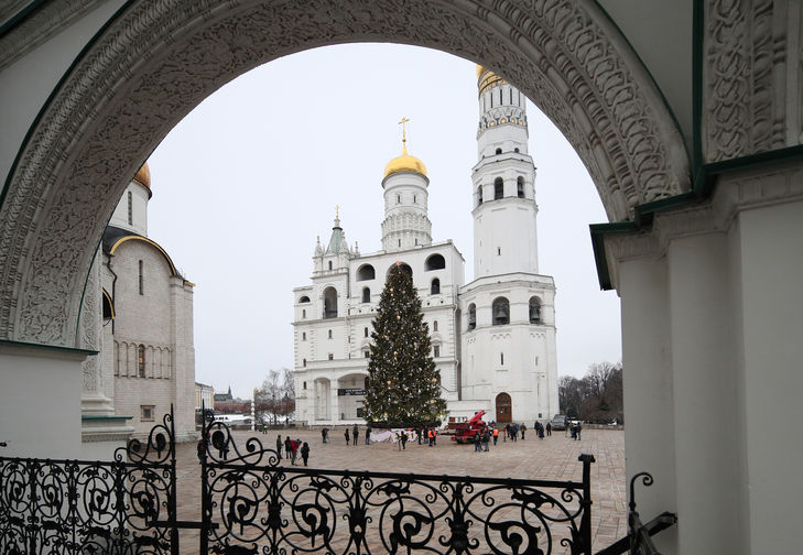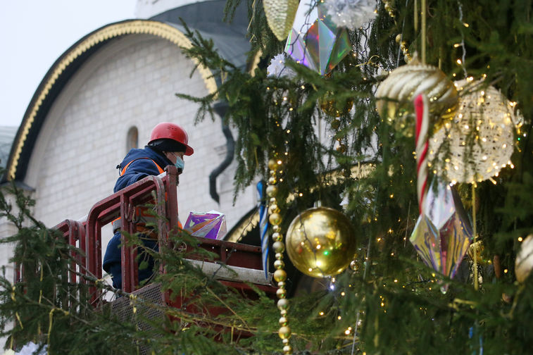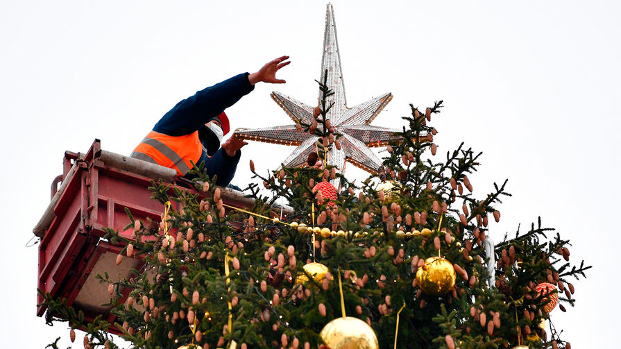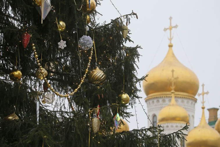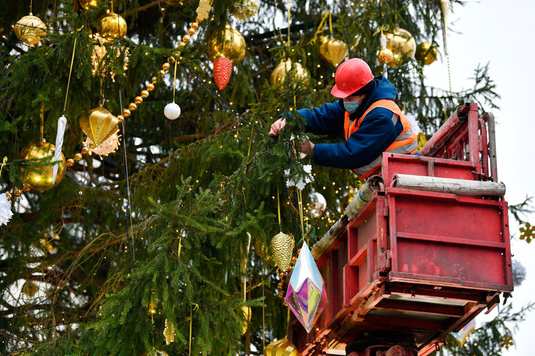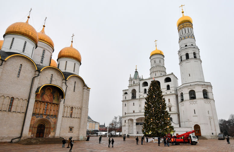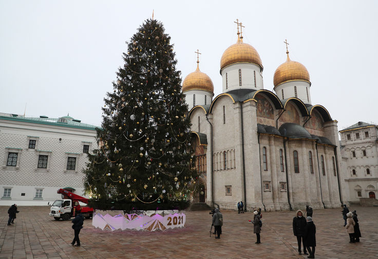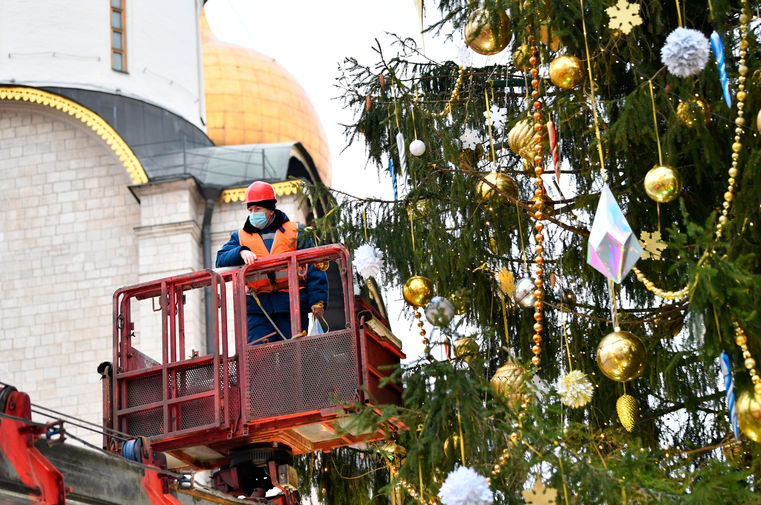 В Москве украсили главную новогоднюю елку страны, установленную на Соборной площади Кремля. Для декорации 96-летней ели из-под Наро-Фоминска были использованы более тысячи игрушек и почти 2,5 км светодиодных гирлянд. В пресс-службе управделами президента рассказали журналистам, что в этом году в качестве темы украшения была выбрана сказка «Морозко».