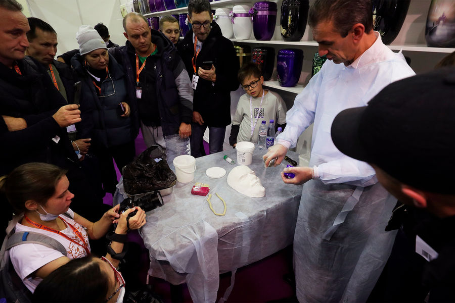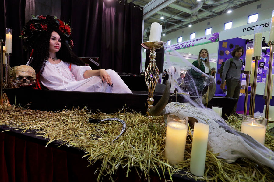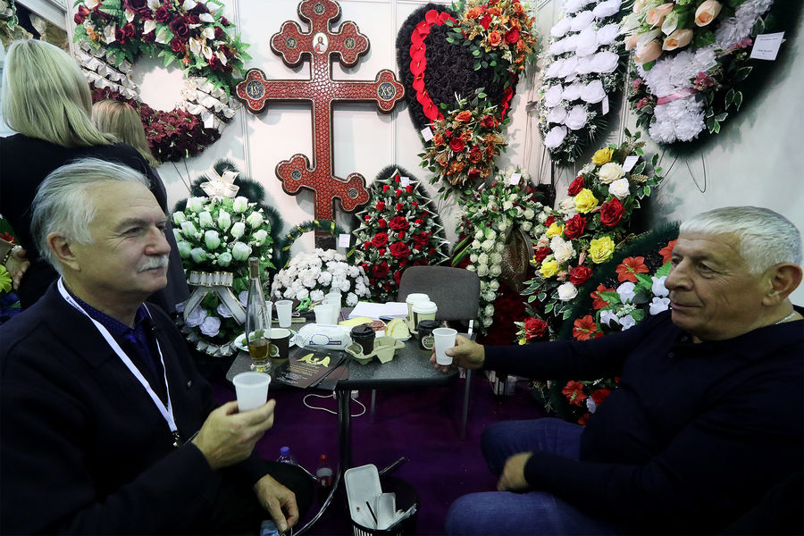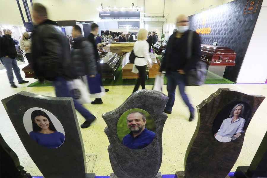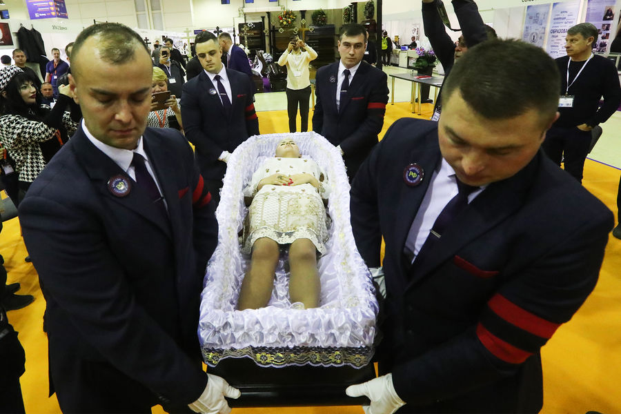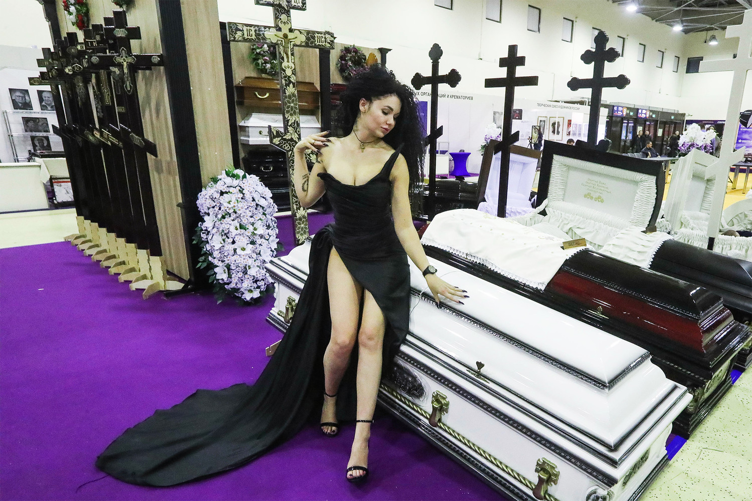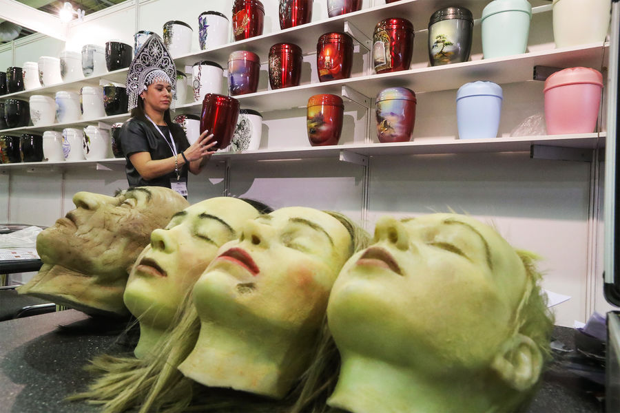 В Москве представили достижения в области похоронных услуг: международная выставка, посвященная этой сфере, «Некрополь — Tanexpo World Russia» прошла уже в 29-й раз. Несмотря на то, что это событие связано с чрезвычайно мрачной темой, каждый раз оно становится весьма зрелищным. Участники выставки стараются развлекать посетителей, которым может показаться скучным просто разглядывать полированные гробы, и привлекают моделей, одетых Панночками из гоголевского Вия или готическими дивами, устраивают показы мод на похоронную тематику и украшают стенды сверкающими черепами.
