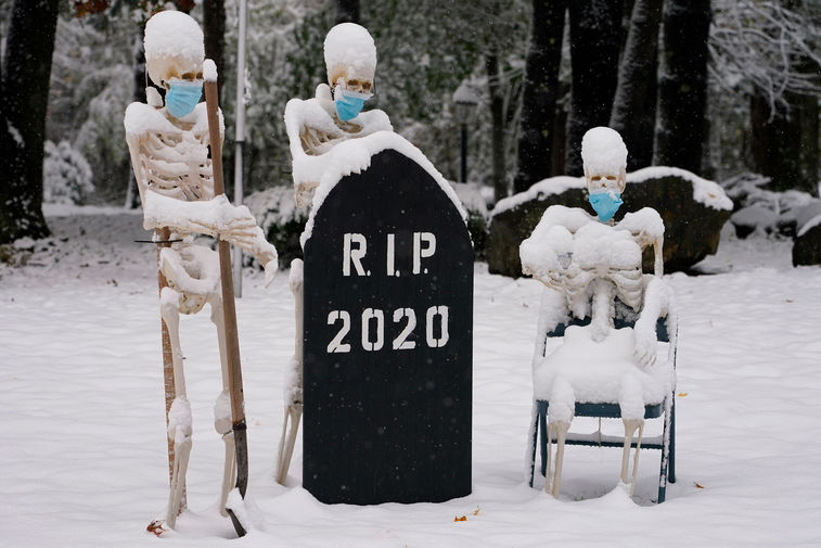 В минувшую субботу мир праздновал Хеллоуин. Многие годы в США, а вслед за ними и во всем мире, его принято отмечать, наряжаясь в страшные или смешные карнавальные костюмы и пытаясь напугать друг друга так, чтобы было безудержно весело. Однако в этом году Хеллоуин по-настоящему широко и массово отметили лишь в Ухане — городе в Китае, откуда распространился в начале 2020-го вирус, к настоящему моменту унесший жизни более 1,2 млн человек во всем мире. В пятницу, 30 октября, тысячи людей собрались в парке развлечений Happy Valley Wuhan — в костюмах пиратов, супергероев и медсестер-зомби они приехали на парад по случаю Хеллоуина. Остальному миру оставалось им только завидовать: несмотря на то, что и в других странах, особенно в США, люди постарались украсить свои дома и запастись конфетами для детей, им приходилось принимать меры, чтобы оградить себя и близких от заражения и отказываться от массовых гуляний в пользу более камерных вечеринок.