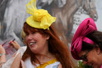 В этом году предпочтения публики разделились. Часть решила предстать в сдержанных образах, отдавая предпочтение шляпам с широкими полями, декорированным небольшими перьями или искусственными цветами, и головным уборы с цветовыми элементами британского флага и тонкой вуалью.