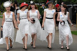 Мужчинам в королевской ложе положено быть в классическом костюме, состоящем из фрака, жилета, галстука и шляпы цилиндрической формы черного или серого цвета.