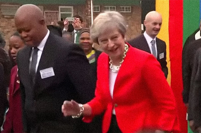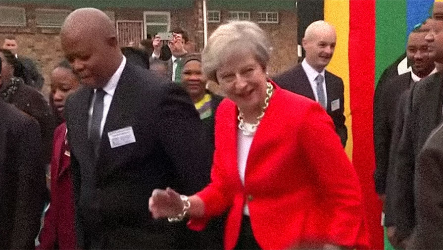 Это уже в второй раз, когда во время поездки в Африку Тереза Мэй выступает на публике с нелепым танцем: двумя днями ранее премьер-министр внезапно стала совершать движения, похожие на танцевальные, встречаясь с группой школьников в Кейптауне, в ЮАР.
