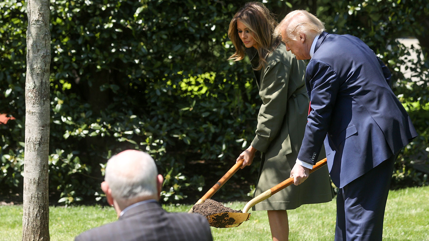 «Мы делаем то, что я люблю делать: сажаем дерево, — объявил Трамп. — Мне всегда это нравилось». После этого он немного порассуждал о том, что дерево «вырастет большим и красивым, и будущие поколения будут смотреть на него и спрашивать «А кто посадил это дерево?».
