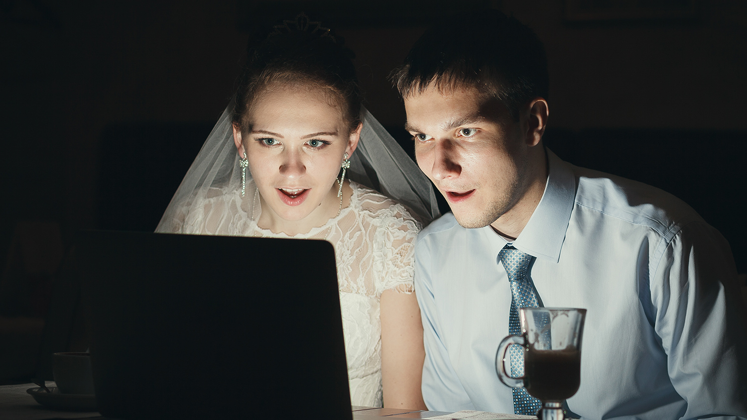 По словам Олега, онлайн-формат не мешает проведению традиционных ритуалов и конкурсов, где друзья и родственники по детской фотографии невесты или жениха должны угадать, чей это ребенок. В какой-то момент молодые, конечно же, танцуют свадебный вальс перед ноутбуком. Главное, чтобы в квартире для этого нашлось место.
