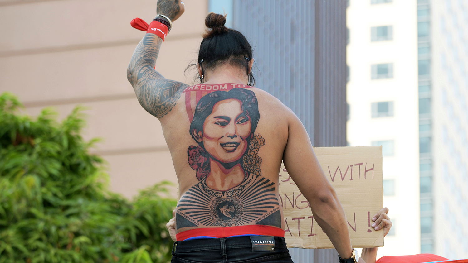 «У меня нет даже татуировок с моими родителями – сказала 32-летняя сторонница Аун Сан Су Чжи. – Я чувствовала себя обманутой и угнетенной, так что я должна была сделать это». Она добавила, что шесть часов боли, которую она терпела во время нанесения татуировки, — ничто по сравнению с эмоциональной подавленностью, которую она испытывает из-за военного переворота.