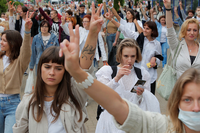 В женской акции протеста в Минске участвуют 10 тыс. женщин