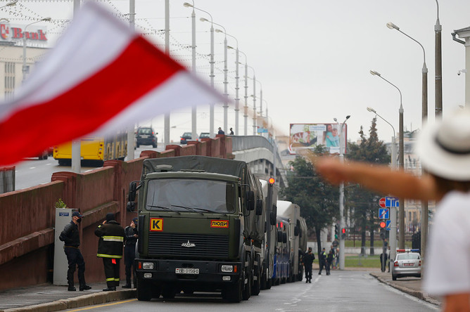 В центр Минска стягиваются колонны силовиков и спецтехники